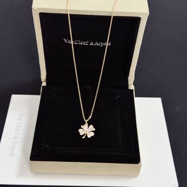 精工原版〕梵克雅宝Vca四叶草梵克雅项链,经典之作 官网同款 时尚潮流 采用多层次金属雕刻设计 使花瓣更立体 镶嵌满钻工艺 尽显女性柔美气质 四叶草幸运图案 象