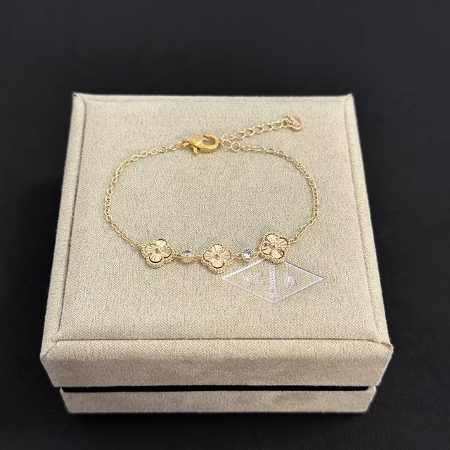 / 精工原版〕Vca四叶草梵克雅宝手链 经典之作 官网同款 时尚潮流 采用多层次金属雕设计 使花瓣更立体 镶嵌满钻工艺 尽显女性柔美气质 四叶草幸运图案 象征幸运和