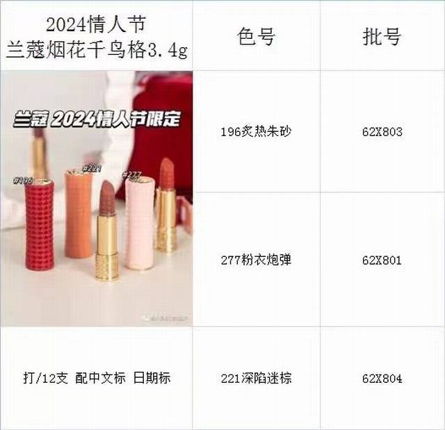 / 高品质 兰蔻烟花口红三件套! 色号:196-277-221。