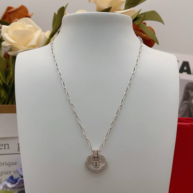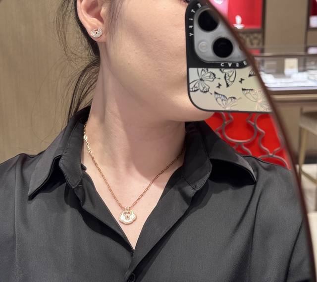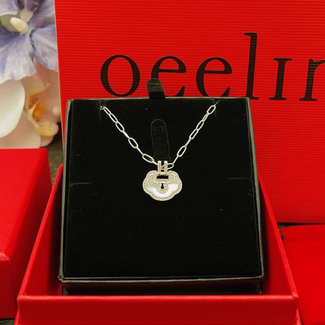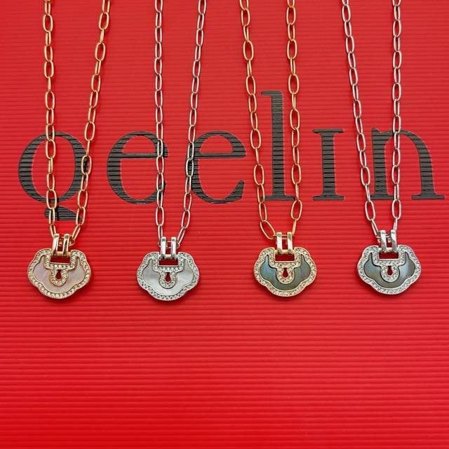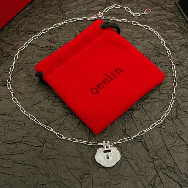 / Qeelin 麒麟最新款白色贝母镶钻平安锁银色项链 一致Zp黄铜材质,非常的上镜设计很特别值得入手高级手工坊系列