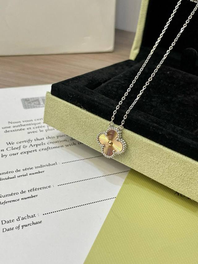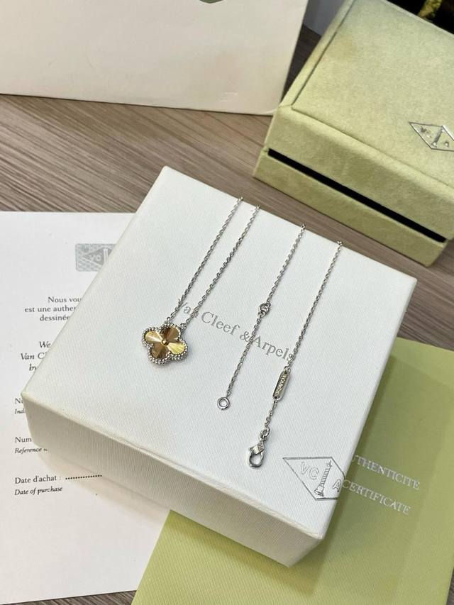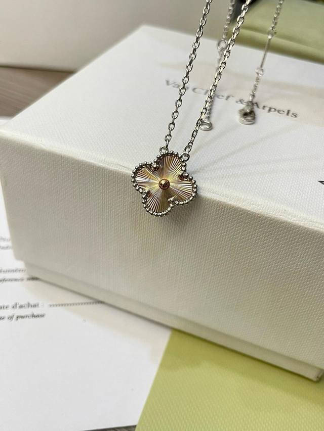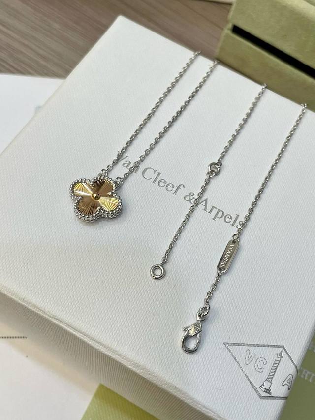 V金材质梵克雅宝Vca镭射拼接高级配色白金色拼接玫瑰金四叶草项链 DDD