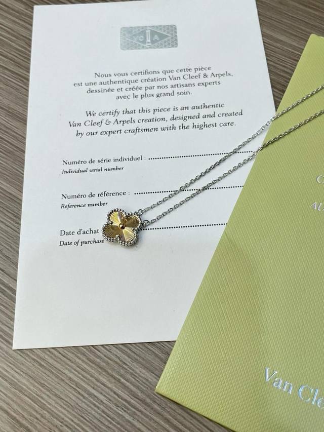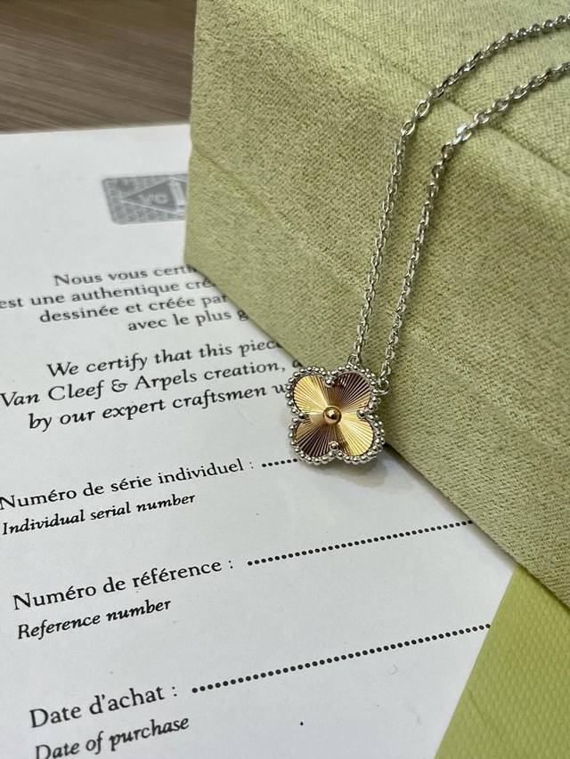 / V金材质梵克雅宝Vca镭射拼接高级配色白金色拼接玫瑰金四叶草项链 DDD
