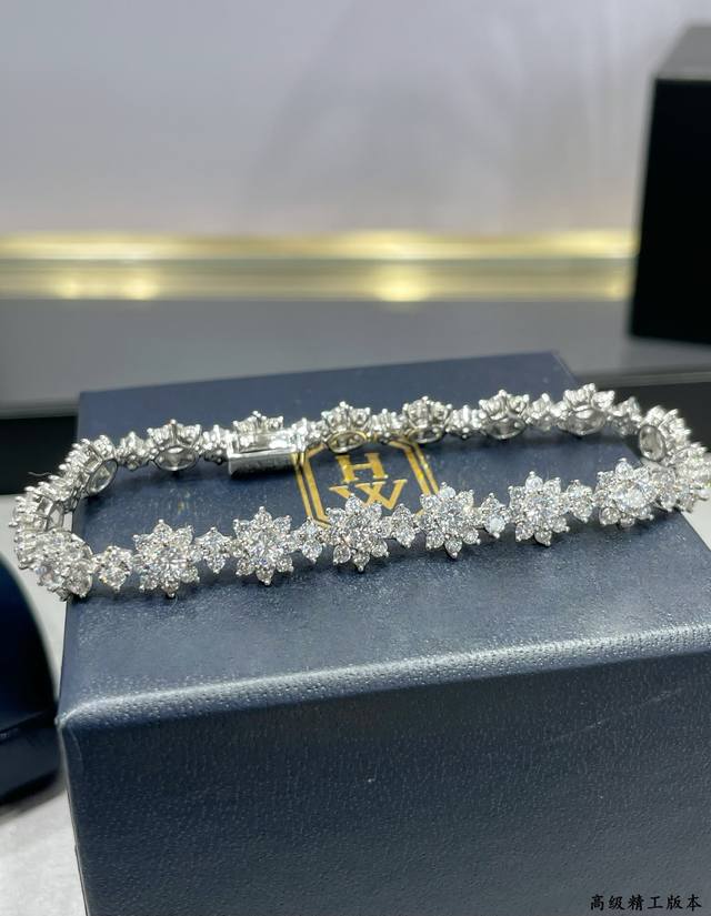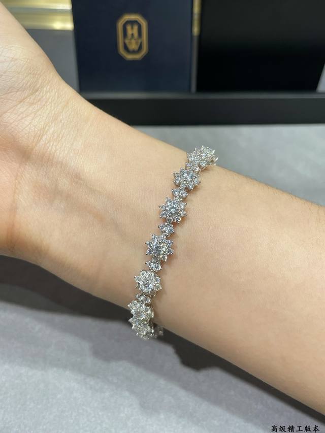 / V金材质 Hw海瑞温斯顿满钻太阳花手链。高级 珠宝 到货啦,珠宝采用最顶尖的 进口高碳钻 栩栩如生,精工的切割高端定制925纯银镶嵌高碳钻 Bling Blin