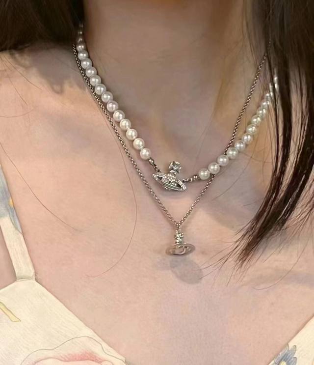 Vivienne Westwood 西太后项链宝宝,什么是快乐星球,来,这就是快乐星球!绝美中号立体土星项链,银透明珠,重磅推荐闭眼入准没错!纯粹王冠球是经典的象征,闪耀土星环勾勒未来波光流转间,开启一场与未来的崭新际遇!土星上边的钻拿到手完完全全可以感受到它的质感,手感,光泽感超Nice用水钻的点缀出现在土星的设计上,增添不少冷艳时髦的俏丽模样,使得朋克同时又有点小少女,自带一群时尚粉!真的敲好看,可盐可甜,可纯可欲!一眼便钟情,绝对是“实用+高级”界的杠把子,绝对的Yyds,绝对的宝藏永不过时的土星