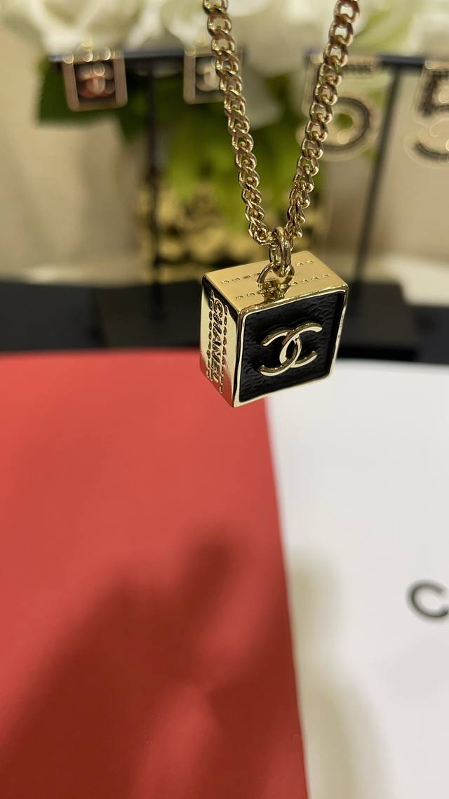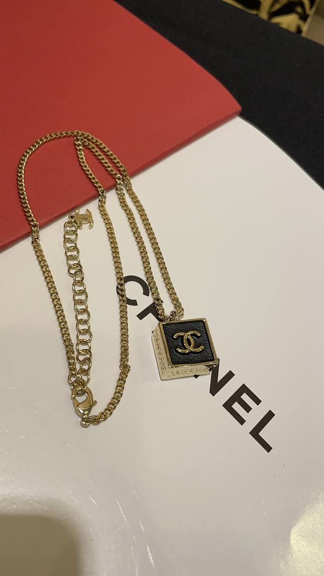 FFF 今日到货 双面可佩戴 DDD 23S新款复古黑金色双C小方块项链 DDD 低调又优雅的黑色小方块超级百搭 DDD 滴油工艺模拟的皮质褶皱 逼真细腻 DDD 刻字细节也太精致啦 上身又美又飒 DDD 独家购入Yb开发定制 黄铜材质 滴油工艺 DDD 项链带包装 DDD