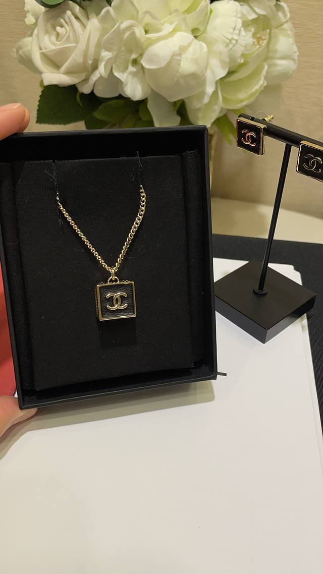今日到货 双面可佩戴 DDD 23S新款复古黑金色双C小方块项链 DDD 低调又优雅的黑色小方块超级百搭 DDD 滴油工艺模拟的皮质褶皱 逼真细腻 DDD 刻字