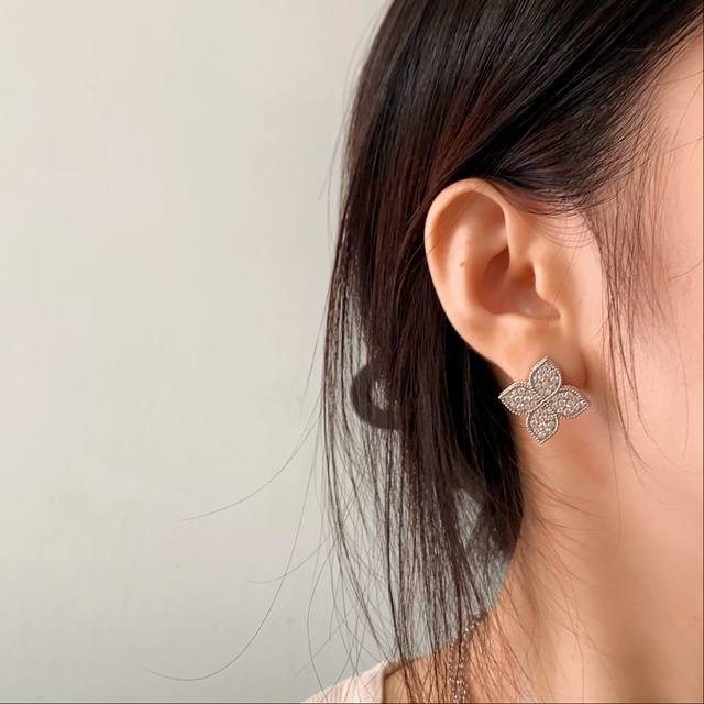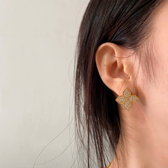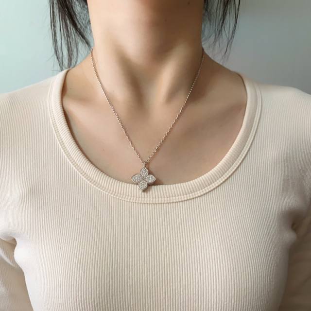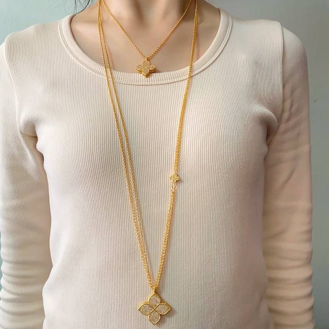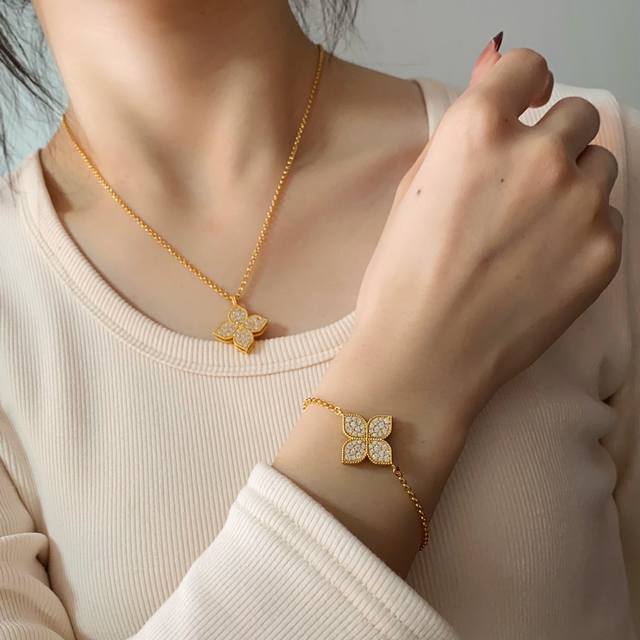 Roberto Coin珂瑛高级感时尚轻奢满钻菱形花几何花朵吊坠耳钉手链短项链长款项链毛衣链套装 黄铜材料电镀18K金 金色银色2色