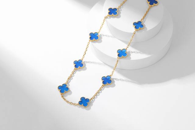 / 四季都要带的项链 ,十花蓝玉髓项链 黄金色 Alhumbra Vintage 十花项链 在单花已经快要街款的时光 进阶十花可谓是驾驭四季的不二之选 穿睡衣穿T恤