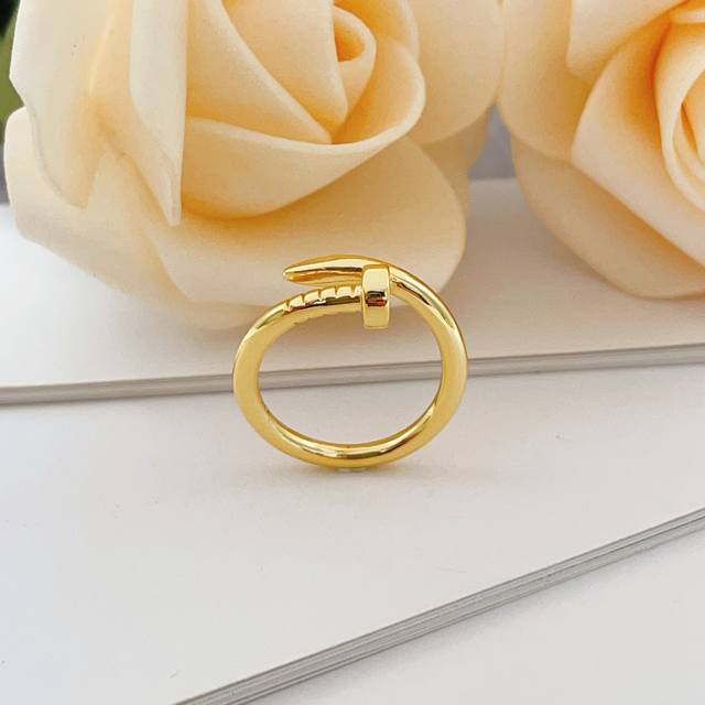 / 大小尺寸:6号、7号、8号 Cartie*最新款金色钉子戒指 一致Z批黄铜材质,非常的上镜设计很特别值得入手高级手工坊系列