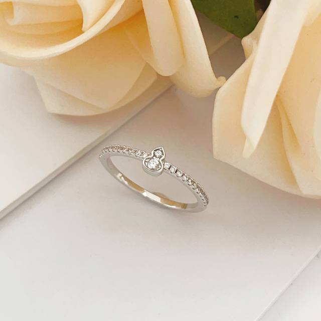 / 大小尺寸:6.7.8码 Qeelin 最新款银色镶钻葫芦戒指 一致Z批黄铜材质,非常的上镜设计很特别值得入手高级手工坊系列