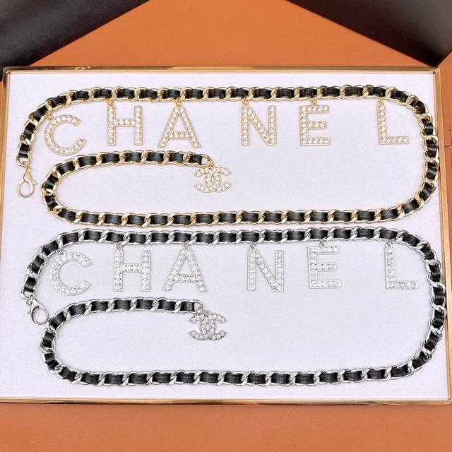 小香满钻字母吊坠编织腰链