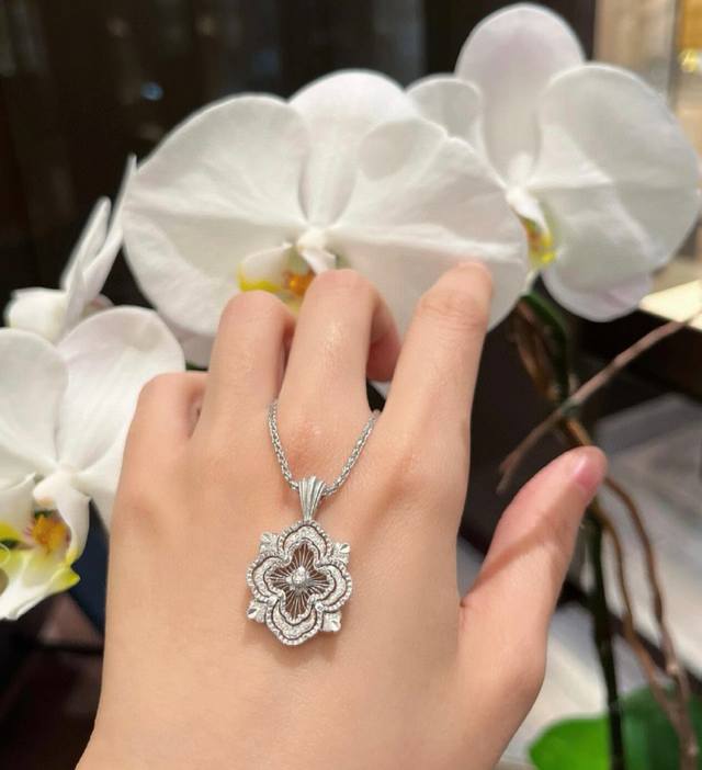 / 布契拉提 Buccellati 意大利高级珠宝品牌 复古宫廷风带钻拉丝四叶草双面项链 V金材质 18K厚金电镀 原版尾链 原版扣头 高品质 布契拉提项链 四叶草