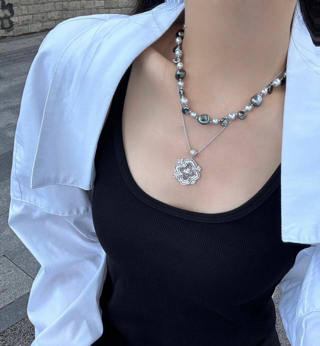 编号Xxl0109项链 最美首饰 方钻镶嵌珍珠和闪石真的很美 细节满满