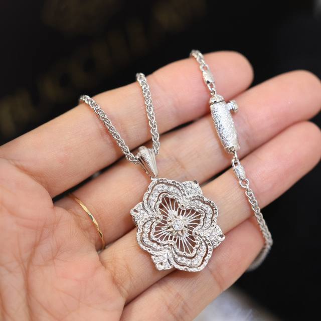 布契拉提 Buccellati 意大利高级珠宝品牌 复古宫廷风带钻拉丝四叶草双面项链 V金材质 18K厚金电镀 原版尾链 原版扣头 高品质 布契拉提项链 四叶草