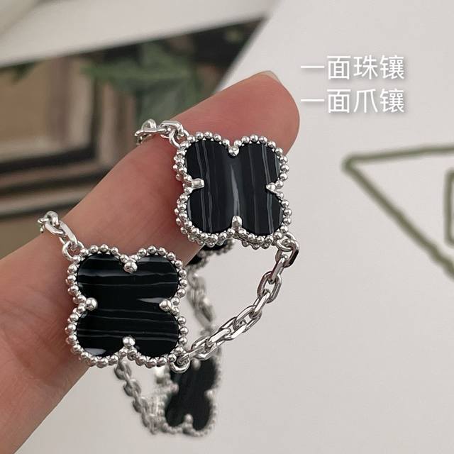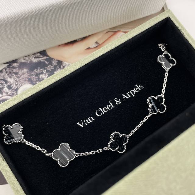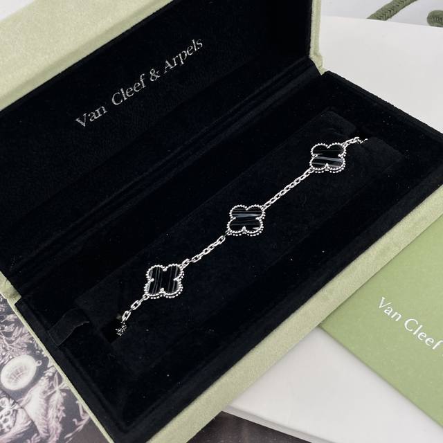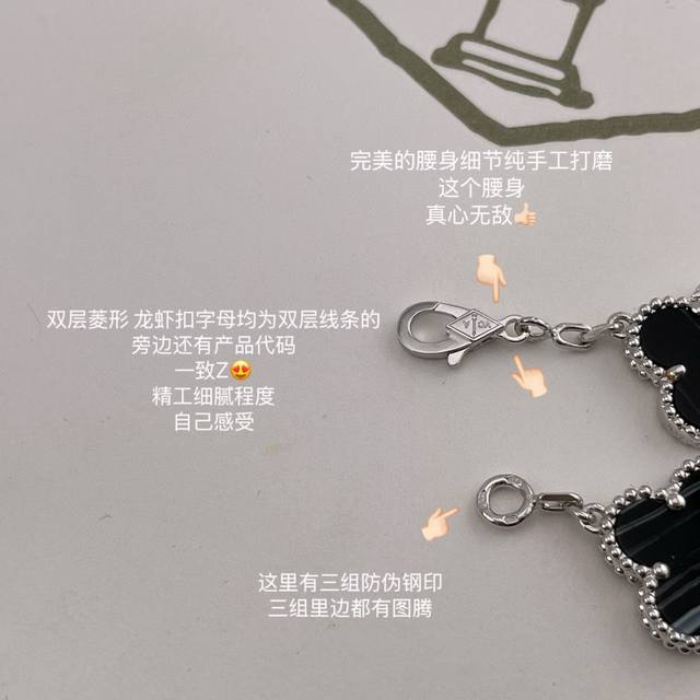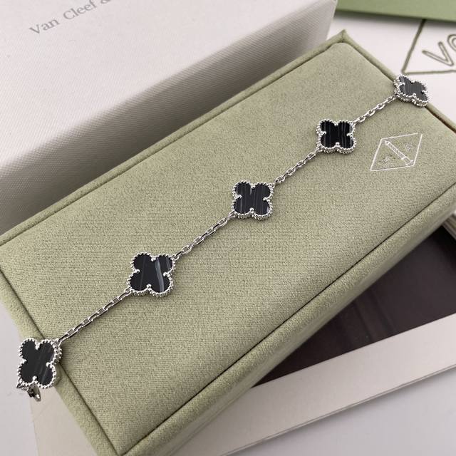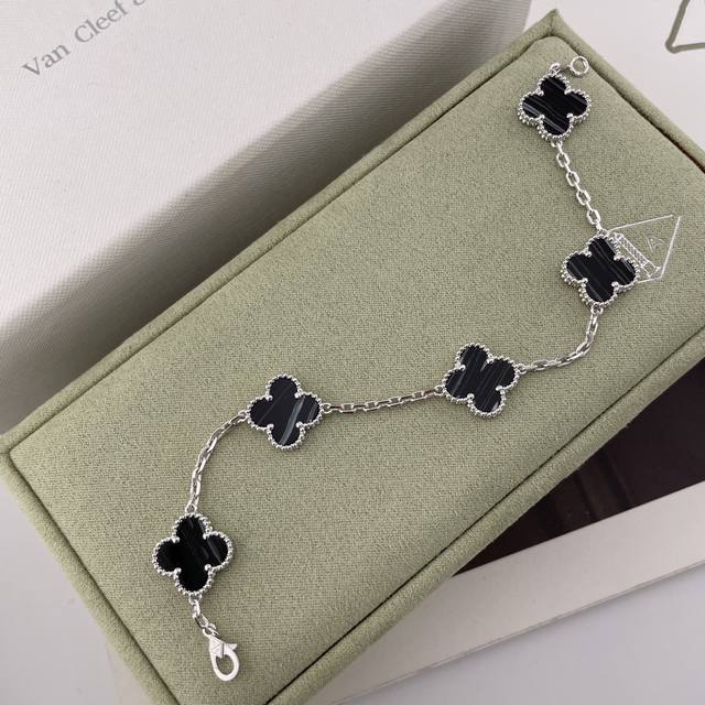 Vca灭世版四叶草5花手链 来,纯银的精工灭世版四叶草5花手链,最新Vic限定款!超级特别的银黑脉纹镐玛瑙配色!绝绝子消费满额的Vic才可以有排单名额的一款,配普盒,原装盒子需另加!Z是珠宝类的,一条就是好几万大洋,不是像小香饰品类那种几千块,没什么技术含量的,珠宝类几万块的,要用纯银几百块的把它做到最大程度的相似度,那是真心没有个一年半载开发不出来的,所以厂里师傅也是给我磨得快不行了,毕竟改了接近10个月,才出来的版,我对