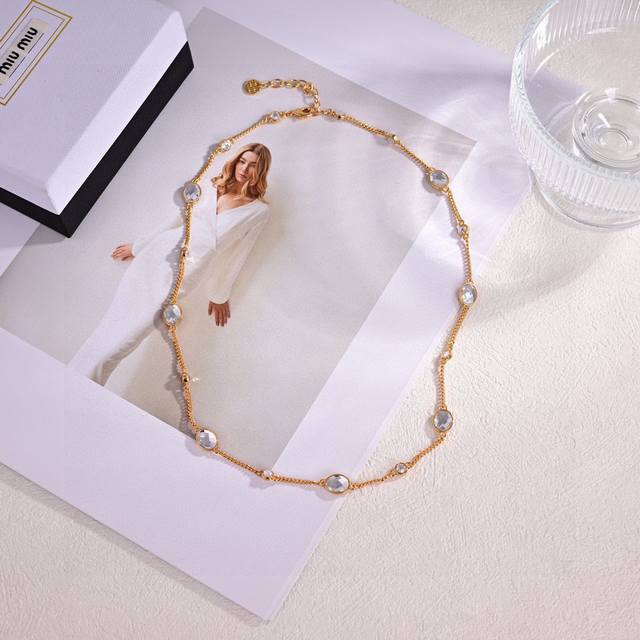 香 25A圆环双C字母琥珀色水钻字母项链...