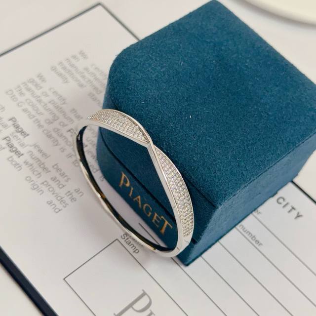 / 批Iaget伯爵手镯, 高端定制版本 镶嵌钻工艺 ,V金材质 ,细节处尽显奢华。金属质感与纹理相互映衬,光线之下,熠熠生辉,体现了奢华与典雅的气质。无论是商务场