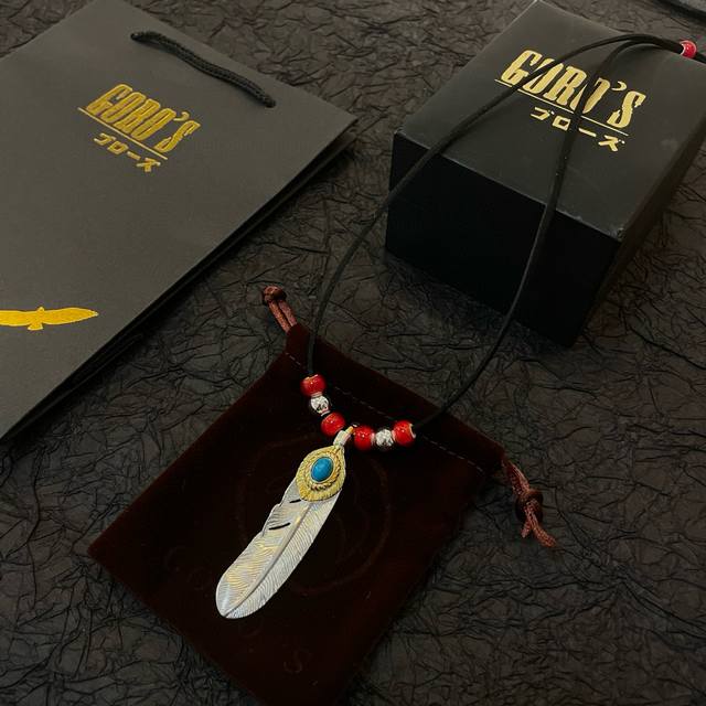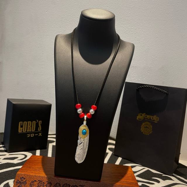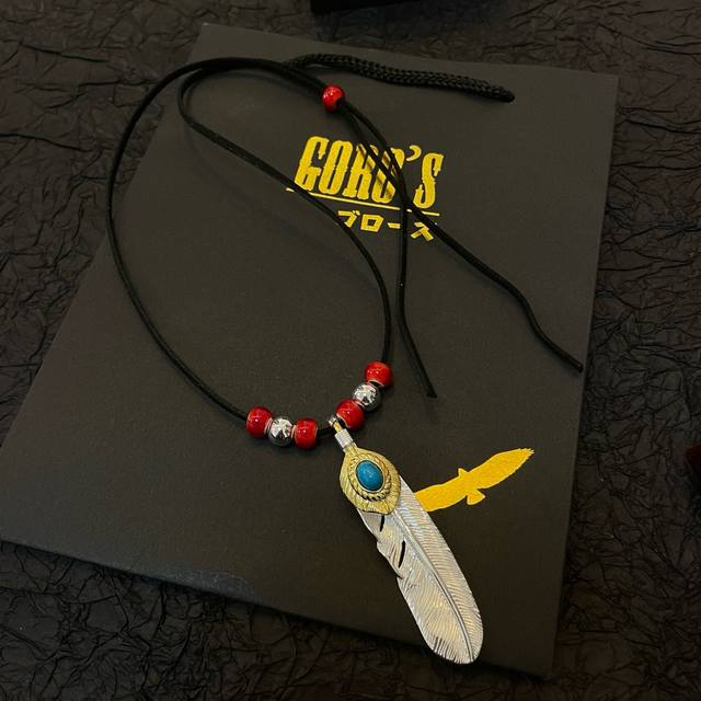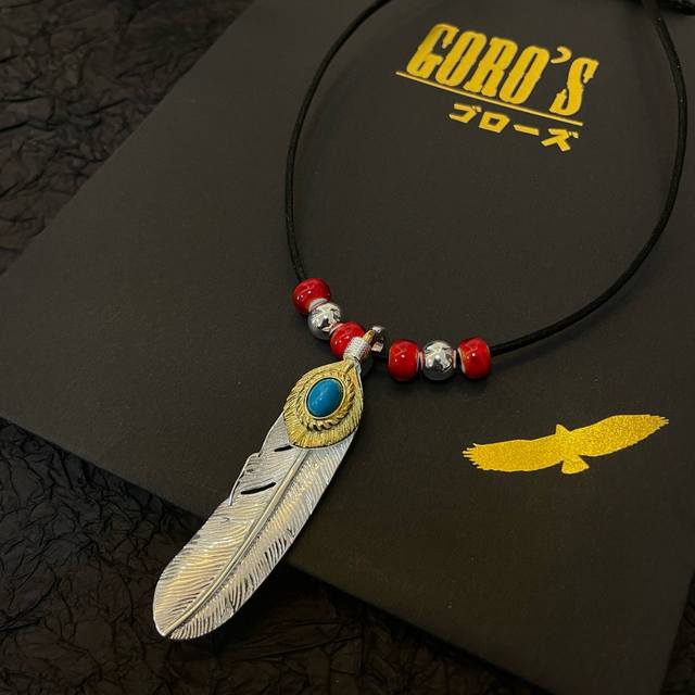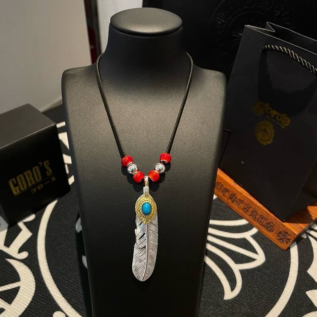 / 新品上架 Goro’S高桥吾郎松石羽毛吊坠,经典鹿皮绳红琉璃项链,顶级版本,认准独家拍摄,主攻高端市场 ,快手 Ins 小红书热门款,绝对区别普通版本!图片产品