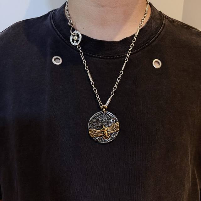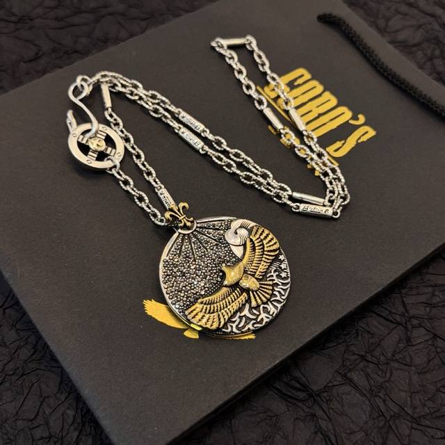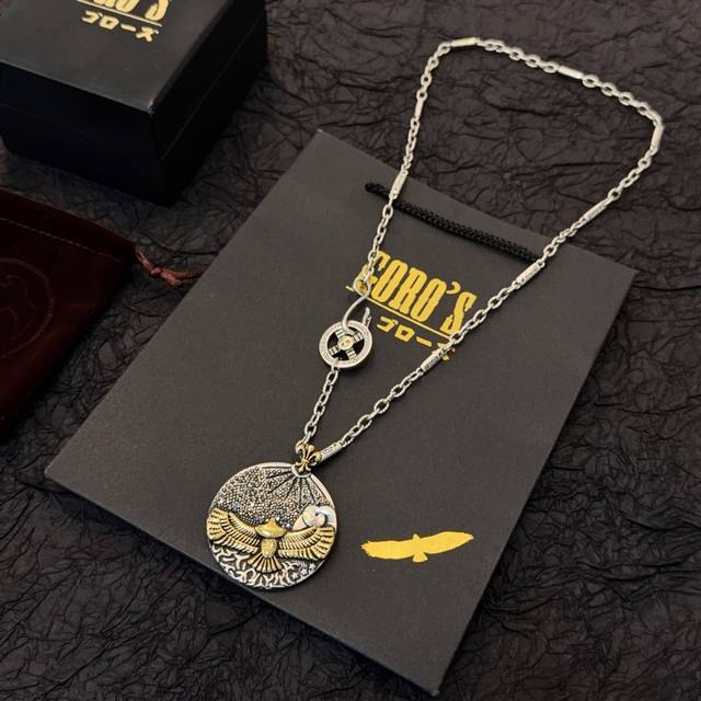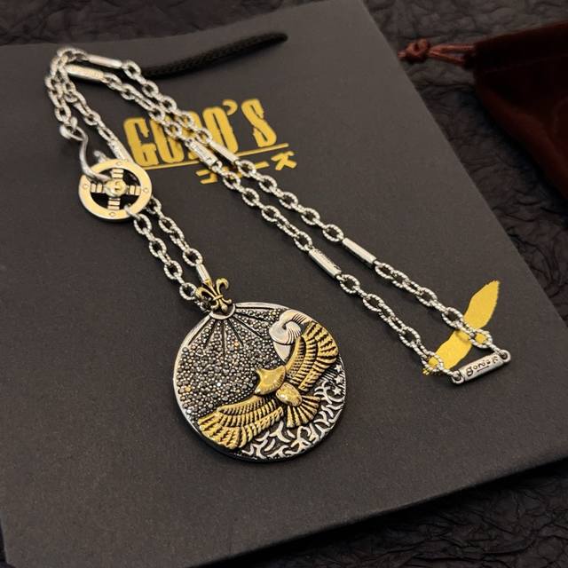 新品上架 Goro’S高桥吾郎金鹰圆饼项链,顶级版本,认准独家拍摄,主攻高端市场 ,快手 Ins 小红书热门款,绝对区别普通版本!图片产品细节与Zp一致!原版制作工艺 精工品质 纯手工打造 ~正品开模潮流时尚必备 男女均可佩戴 情侣款同款 摇滚朋克泰银风格 复古元素 潮流百搭 官网同款