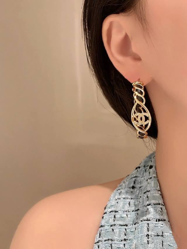本季必入爆款新款耳钉 香 圆圈穿皮双C镂空晶钻字母耳钉 金高银同款最新系列全网首发现Huo!本季必入爆款最最最经典的穿皮系列,酷帅不羁中带着复古的经典浓金色双C Logo+穿皮,一如既往的高级工艺非常细腻精致!上耳可甜可盐超百搭!绝对是日常通勤必备款
