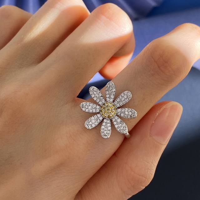/ 杰克宝Jacob & Go捷克豹时尚明星博主同款百搭满钻雏菊花朵开口戒指 黄铜材质 重约3.4G 花朵约1.9Cm*1.9Cm*0.15Cm