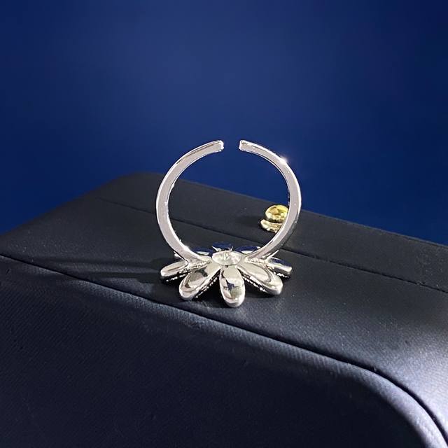 杰克宝Jacob & Go捷克豹时尚明星博主同款百搭满钻雏菊花朵开口戒指 黄铜材质 重约3.4G 花朵约1.9Cm*1.9Cm*0.15Cm DDD