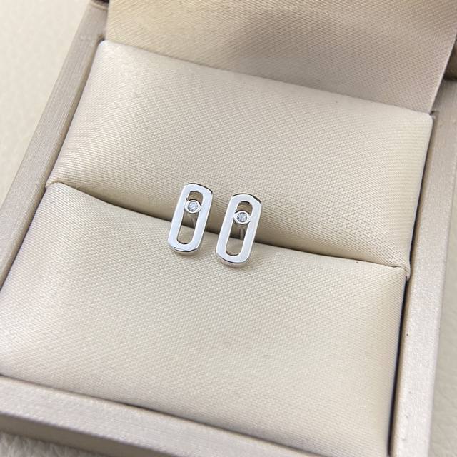 / 梅西卡- 单钻 滑动 光面耳钉 法国巴黎一颗钻移动 高端定制镶嵌 可移动的闪钻 是经典Move系列的标志设计,这颗璀璨的闪钻象征着过去、现在和未来的爱。 Mov