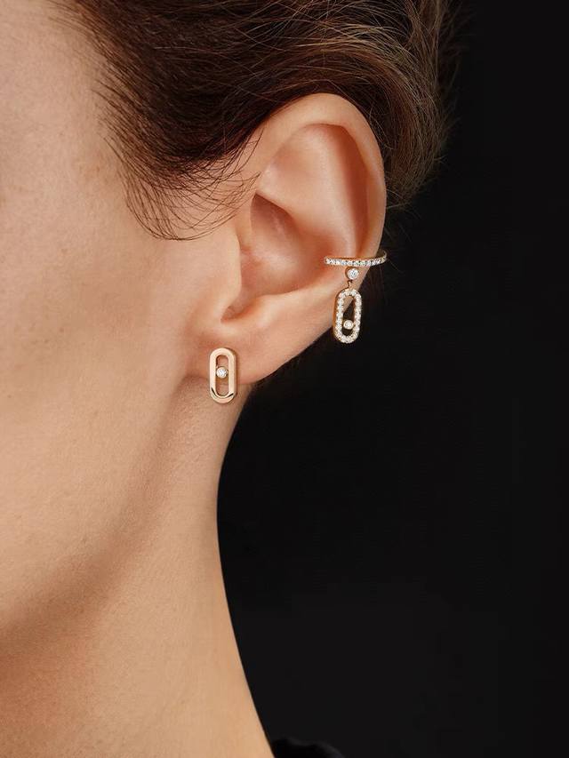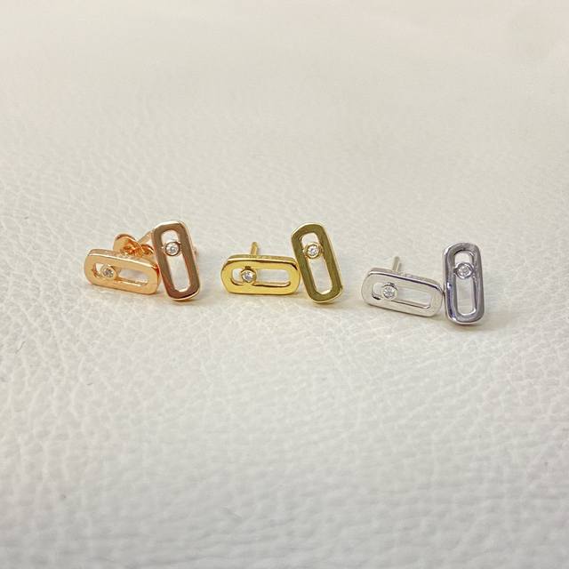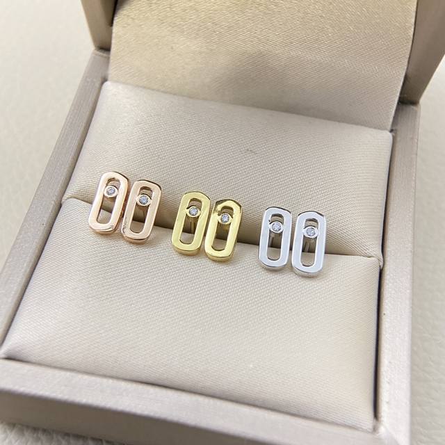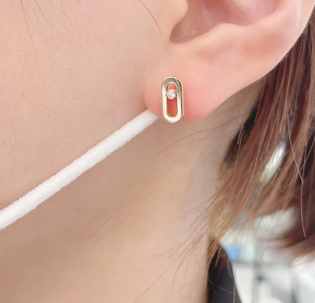 梅西卡- 单钻 滑动 光面耳钉 法国巴黎一颗钻移动 高端定制镶嵌 可移动的闪钻 是经典Move系列的标志设计,这颗璀璨的闪钻象征着过去、现在和未来的爱。 Move系列设计优雅精致,随着身体的移动,晶莹剔透的闪钻也会跟着变换位置,在阳光的照射下闪耀着迷人的光芒 白金玫瑰金两色 电镀厚金 耳钉 +飞碟15 DDD