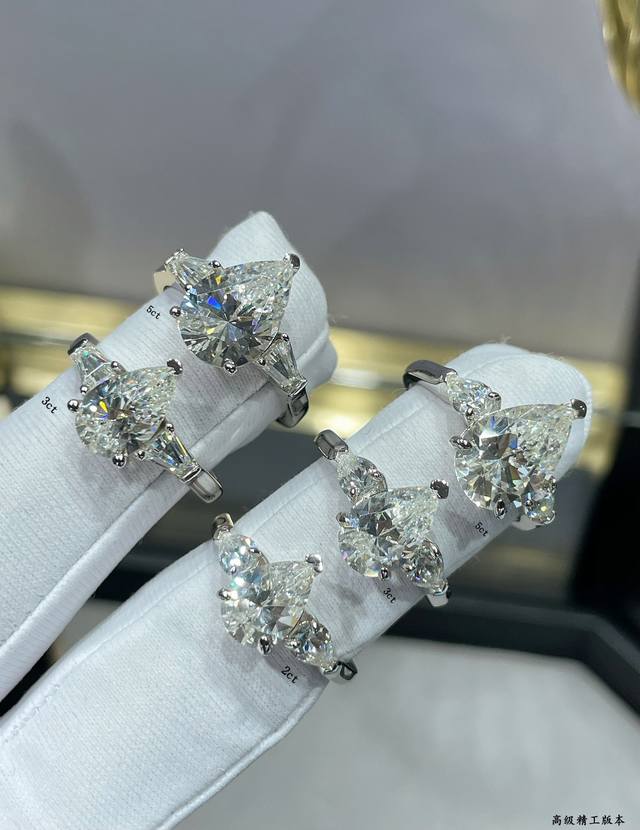 此款调价彩宝:925市场最精工 实价 3克拉水滴梯形戒指 码数:5678。栩栩如生,精工的切割高端定制925纯银镶嵌高碳钻 Bling Bling 雍容的设计,