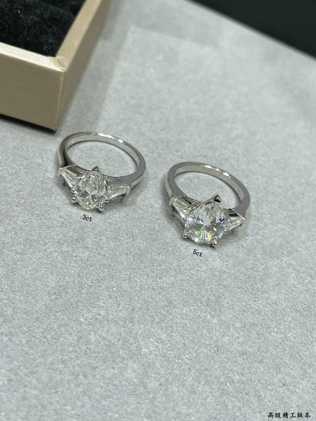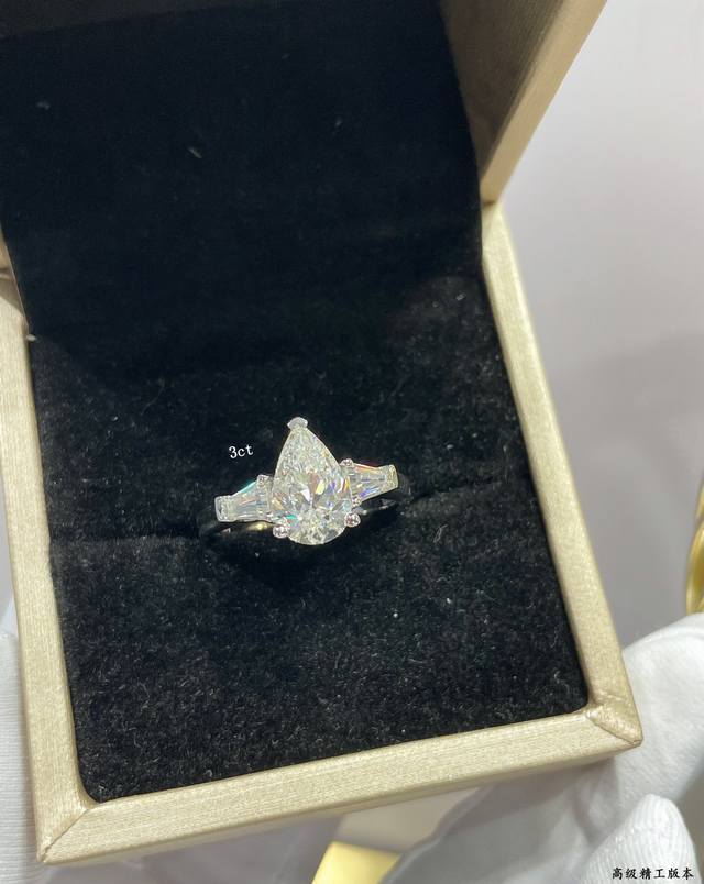 / 此款调价彩宝:925市场最精工 实价 3克拉水滴梯形戒指 码数:5678。栩栩如生,精工的切割高端定制925纯银镶嵌高碳钻 Bling Bling 雍容的设计,