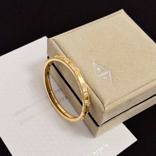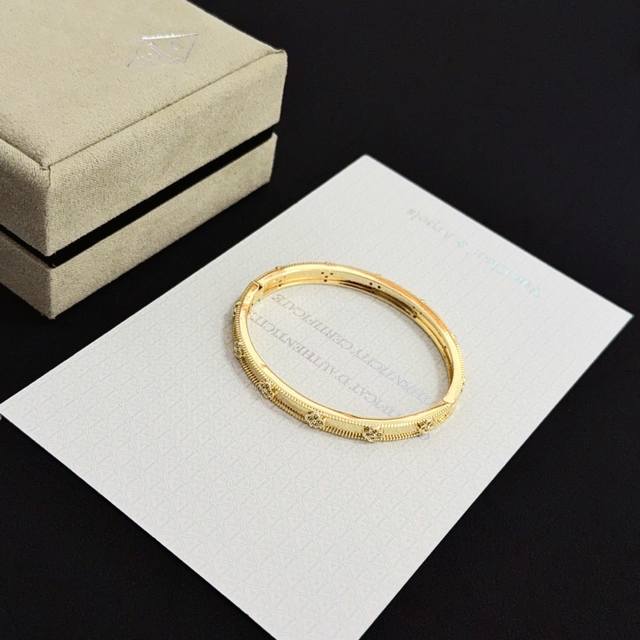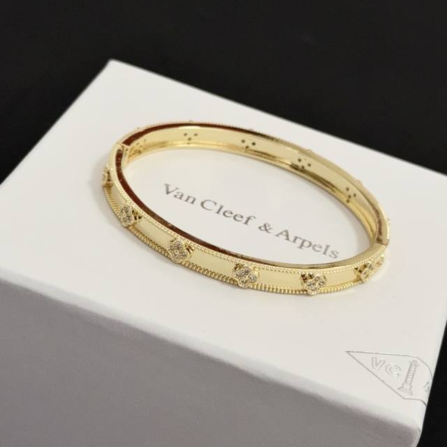 精工原版〕圣诞爆款 Vca四叶草梵克雅宝手链手镯 V金等级 经典之作 官网同款 时尚潮流 采用多层次金属雕刻设计 使花瓣更立体 镶嵌满钻工艺 尽显女性柔美气质 四叶草幸运图案 象征幸运和幸福 独特又浪漫将简单和谐的线条与材质相融合 经过抛光和打磨 彰显高贵优雅