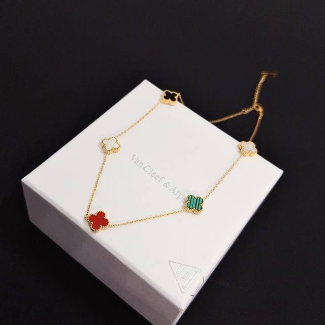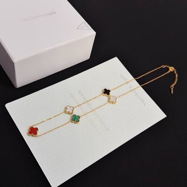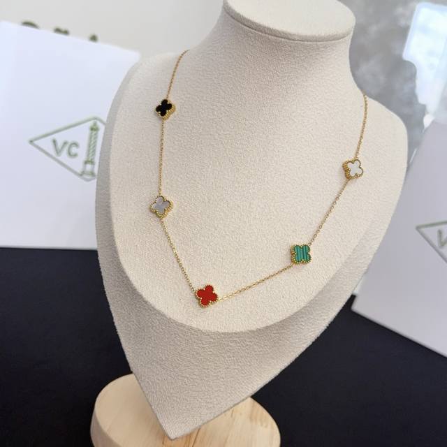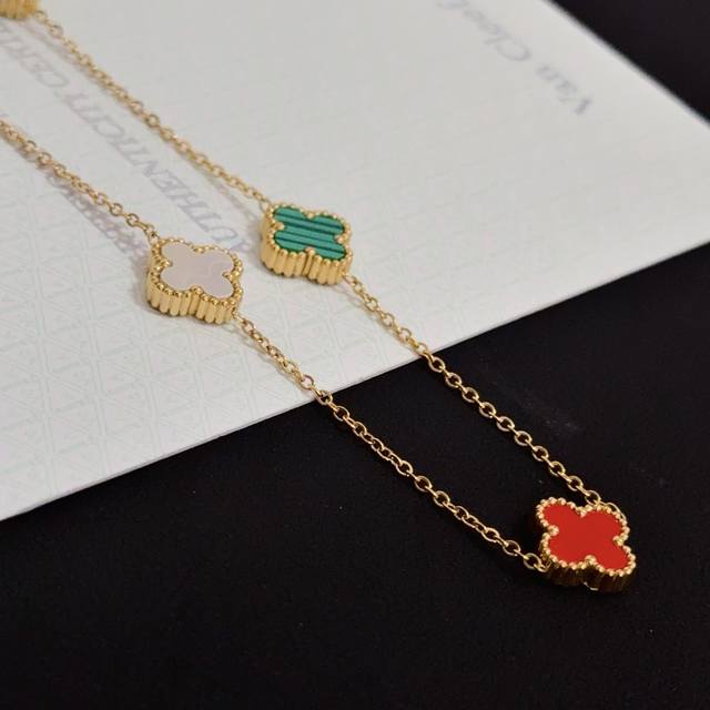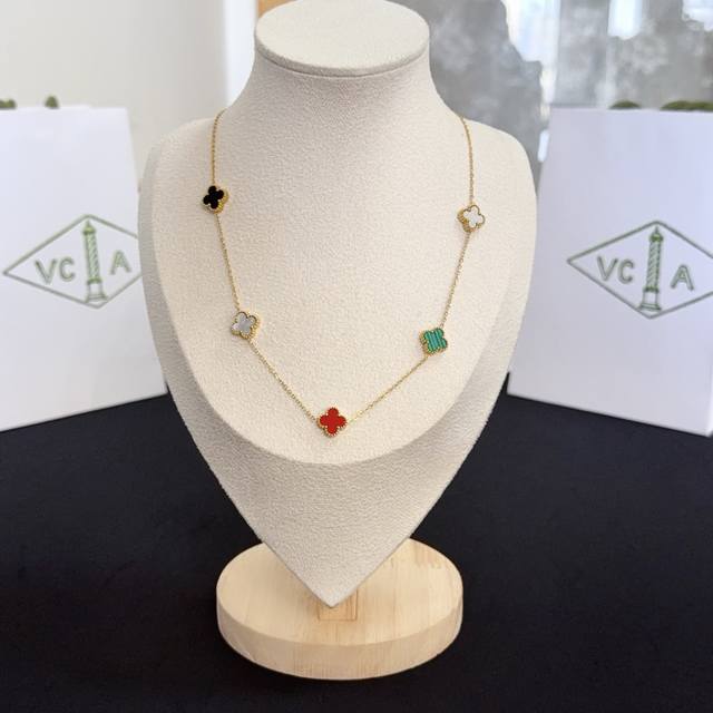 V金材质 Vca10花四叶草项链 车花紫玉髓白贝母...