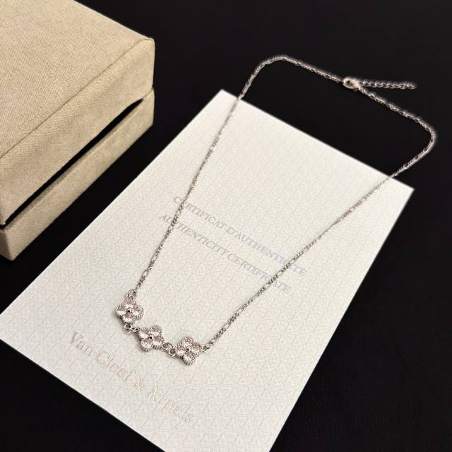 / 精工原版] Vca四叶草梵克雅项链,经典之作 官网同款 时尚潮流 采用多层次金属雕刻设计 使花瓣更立体 镶嵌满钻工艺 尽显女性柔美气质 四叶草幸运图案 象征幸运
