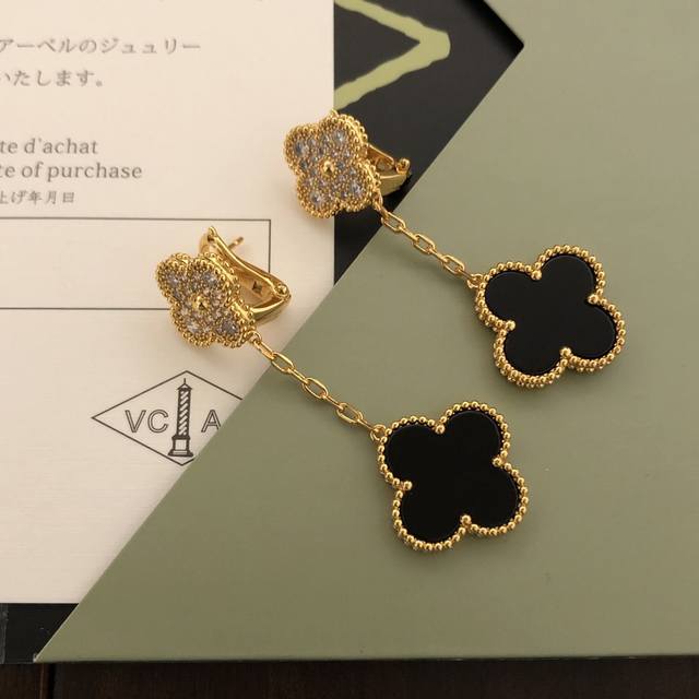 / 精工版本 美弊了V N 梵克雅宝四叶草双花耳拍最新款电镀厚金超强保色做工精致 爆款 爆款实拍原版1:1。经典百搭配925银针 金色