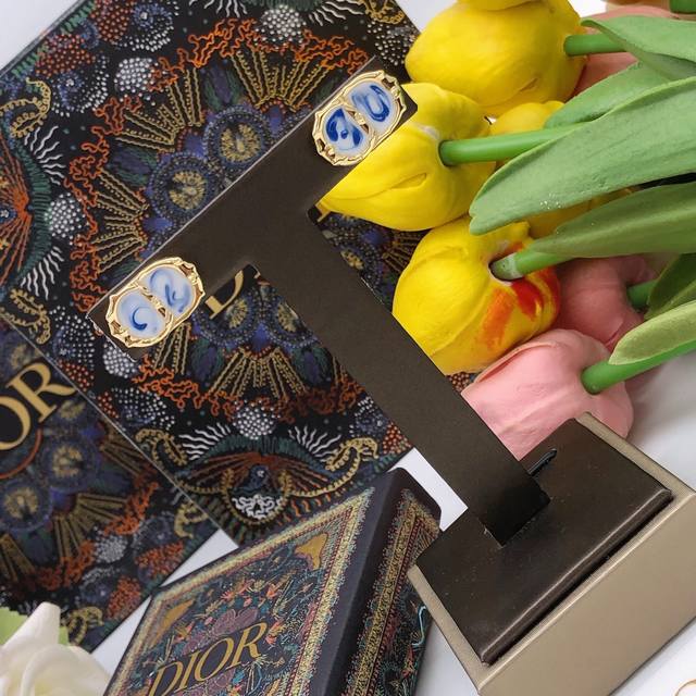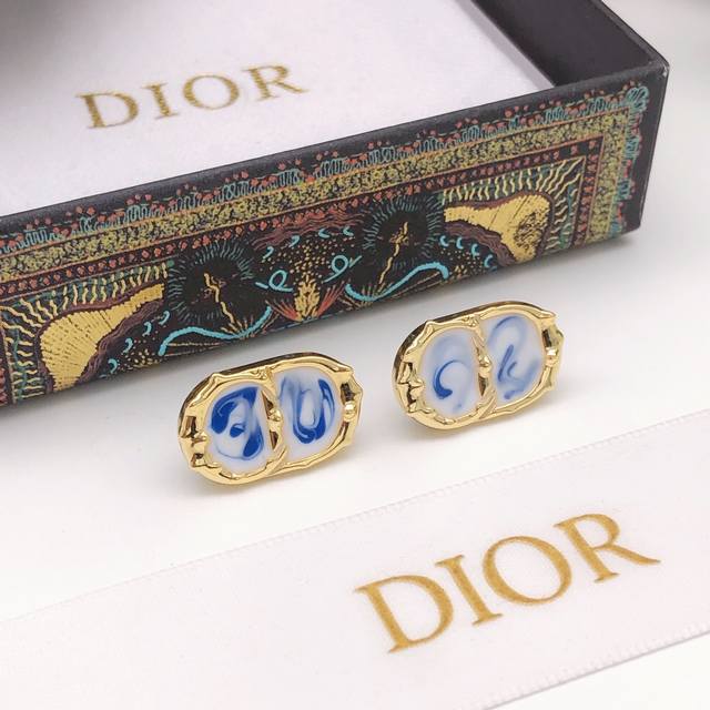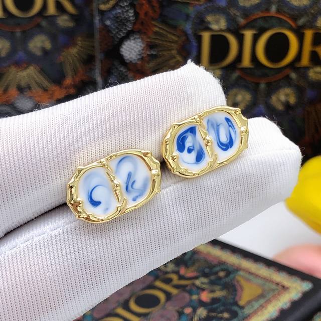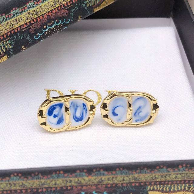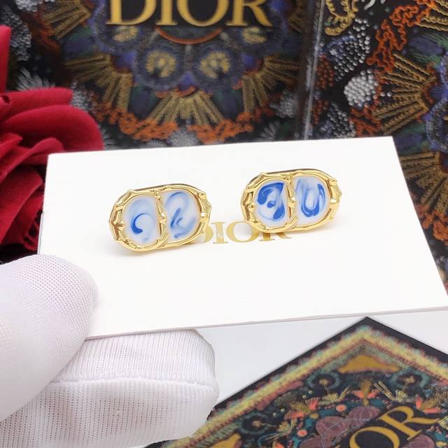 Dio*最新款Cd滴油彩色耳钉 一致Z批黄铜材质
