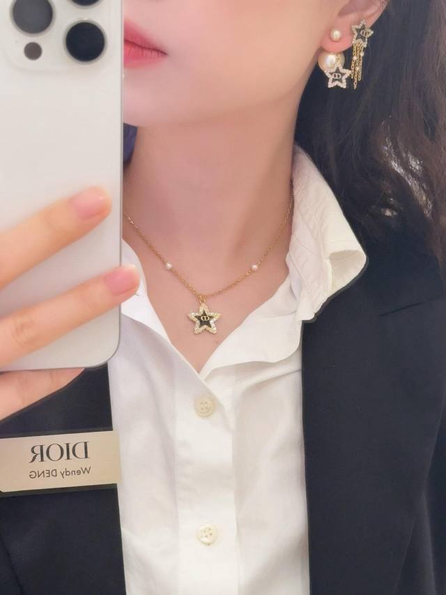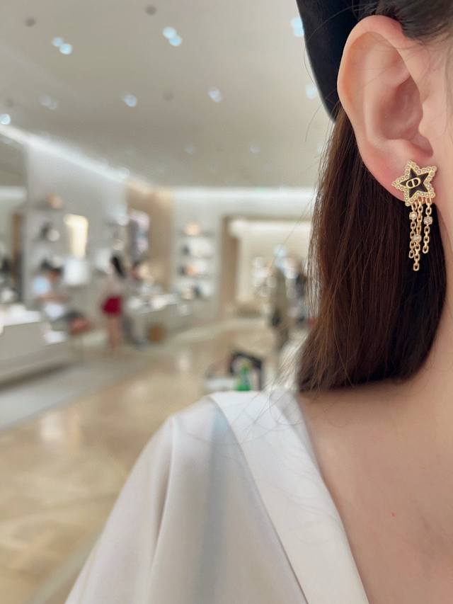 Dio*最新款蓝色星星流苏耳钉 一致Zp黄铜材质