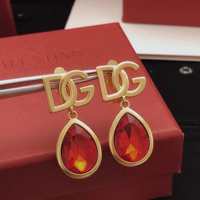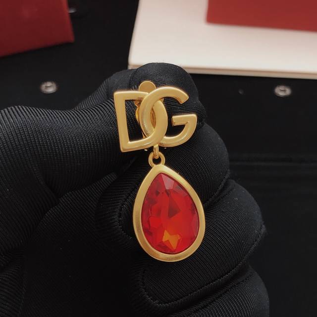 / 编号Dged0050 Dg*最新款滴水红色宝石水晶耳钉 一致Z批黄铜材质