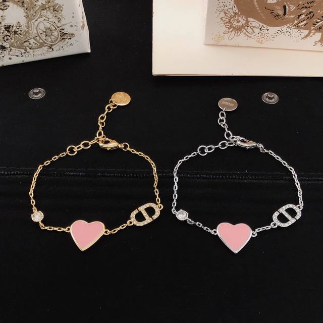Dio*最新款粉色爱心手链 一致Z批黄铜材质