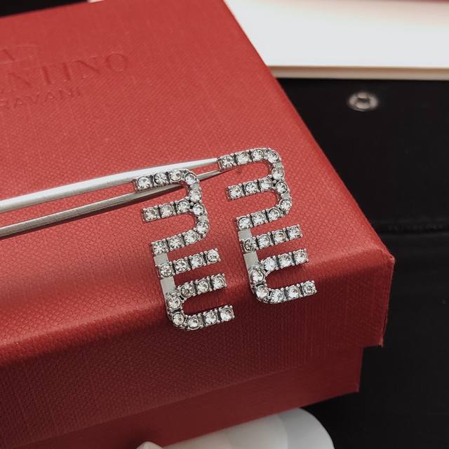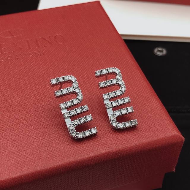 / 编号Med0004 Miumi*最新款银色镶钻耳钉 一致Z批黄铜材质