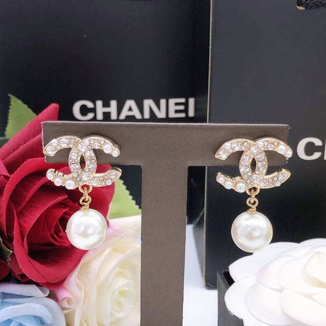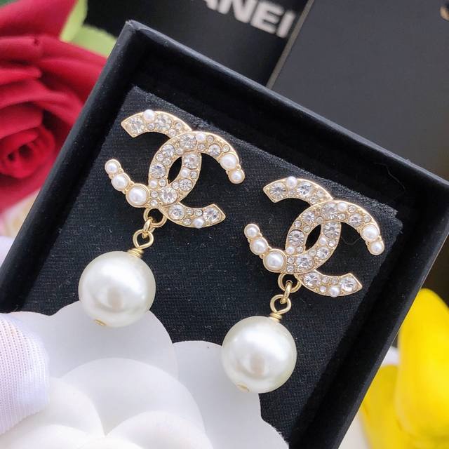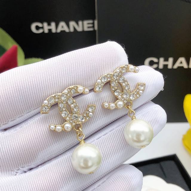 Ch Nel 经典双C 小米珠带珍珠镶钻双C耳钉 做工精致 非常耐看的一款 经典永不过时 Z批品质 S925银针 超级百搭神器 时尚有气质 ,细节如图