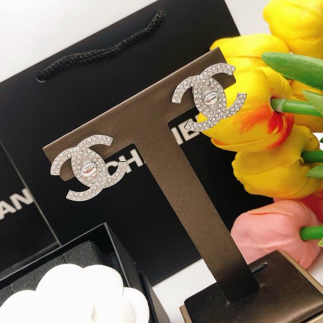编号Xed0207 Ddd 新品 新款 Ddd 书包扣满钻大号银色耳钉 Ddd 黄铜镀金 日常精致高级百搭 DDD