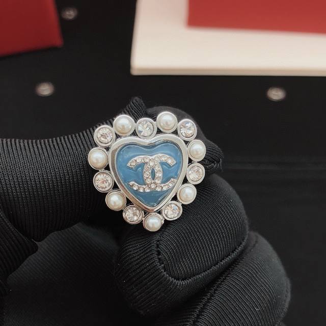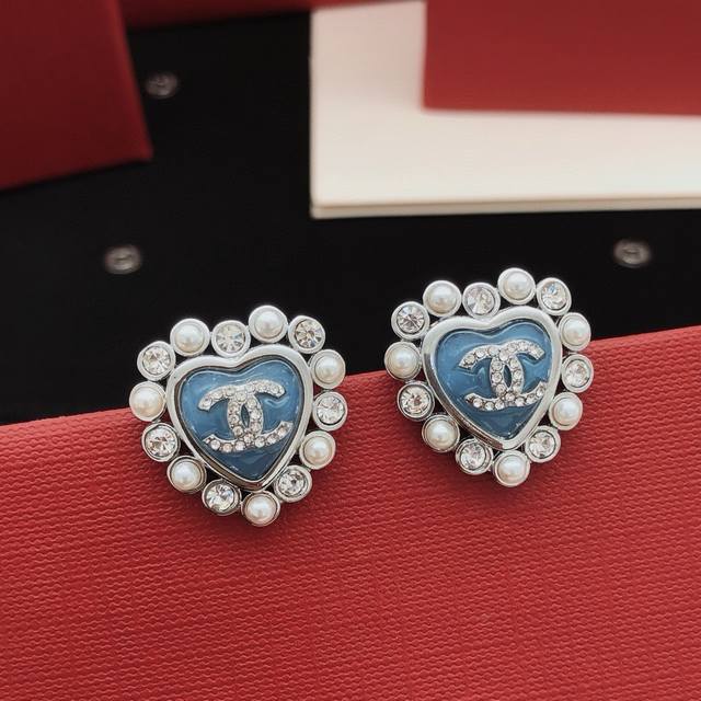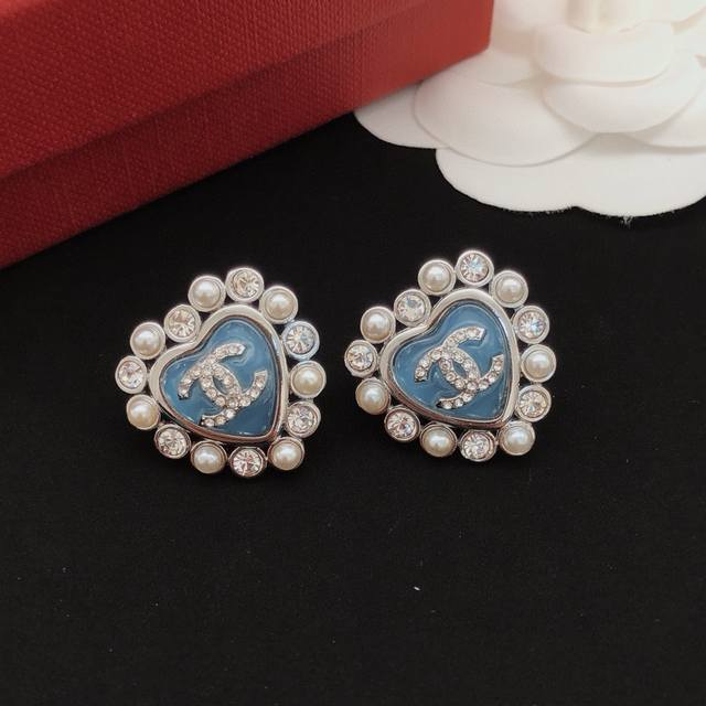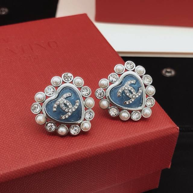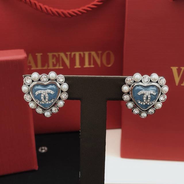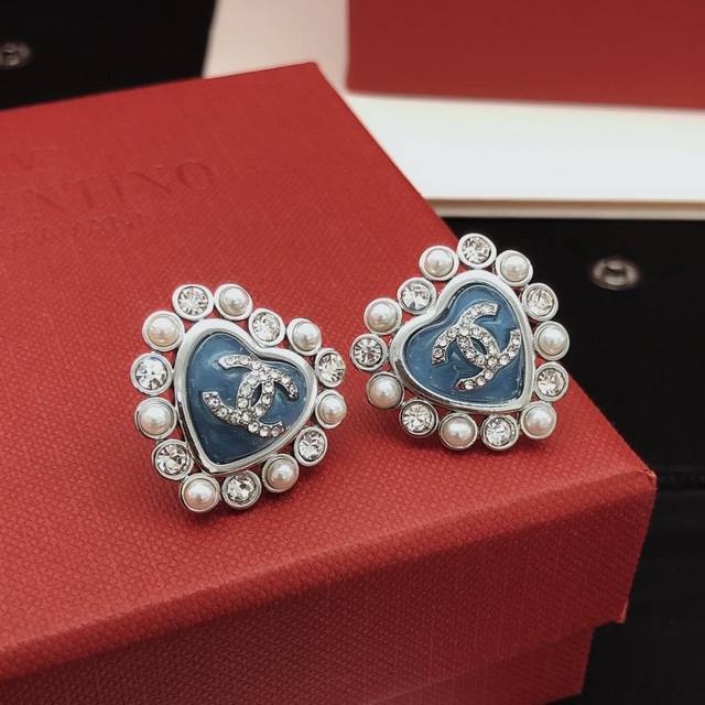 / 编号Xed0580 Ch*Nel最新款蓝色爱心耳钉 一致Z批黄铜材质