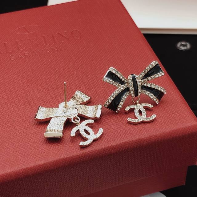 / 编号Xed0625 Ch*Nel最新款蝴蝶结耳钉 一致Z批黄铜材质