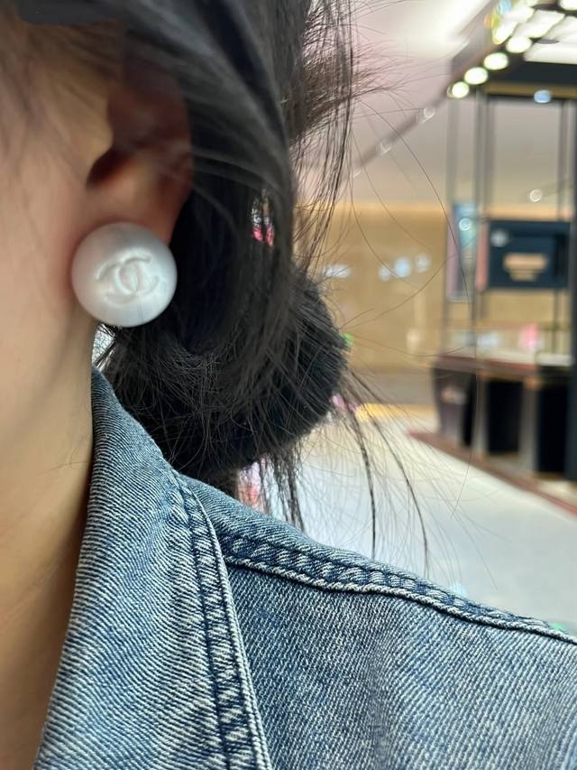 / 编号Xed0721 大号 Ch*Nel最新款珍珠耳钉 一致Z批黄铜材质 上耳图