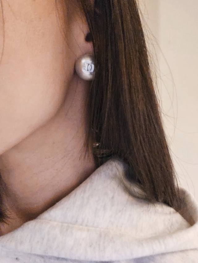 Ch*Nel最新款珍珠耳钉 一致Z批黄铜材质