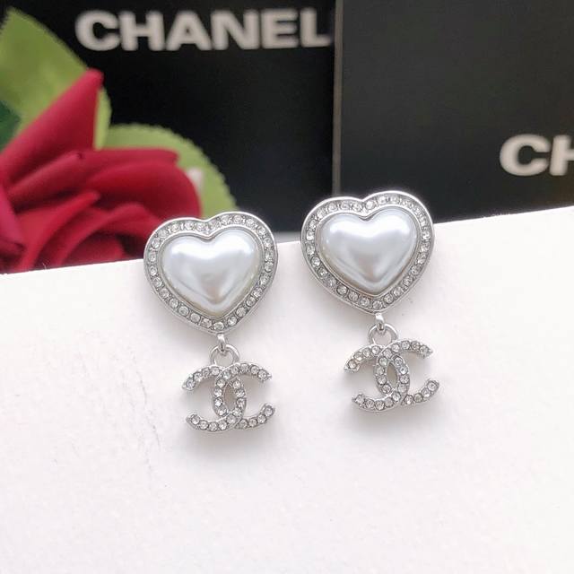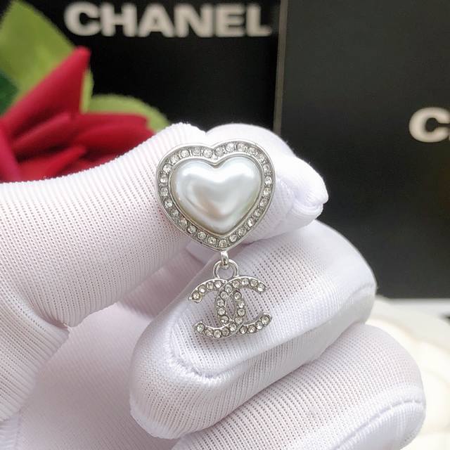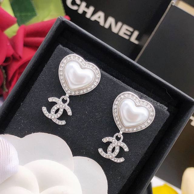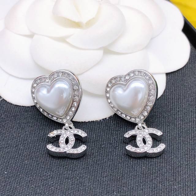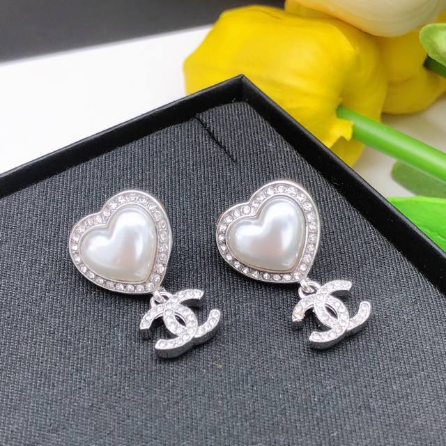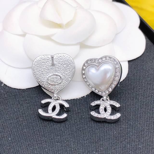 / 编号Xed0951 Ch*Nel最新款银色爱心耳钉 一致Z批黄铜材质