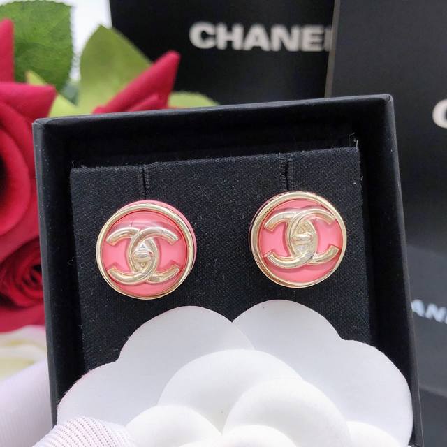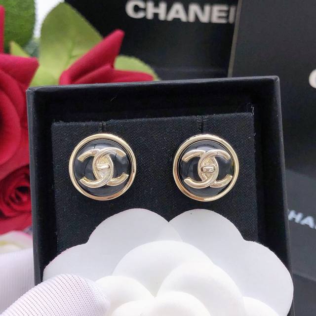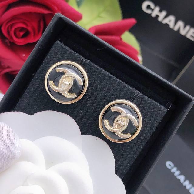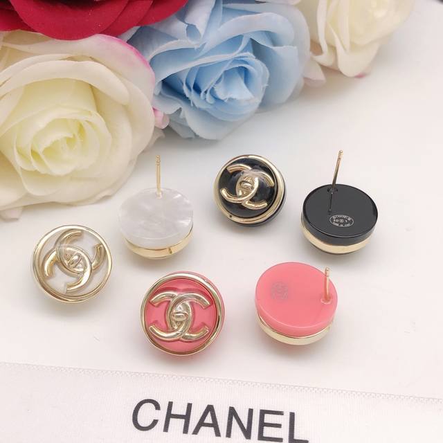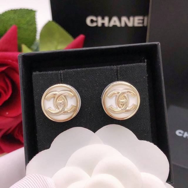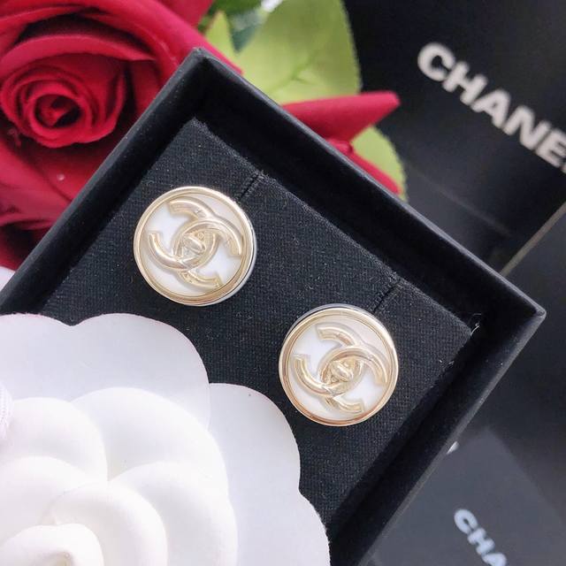 / 编号Xed0966白色 编号Xed0964红色 编号Xed0965黑色 Ch*Nel最新款圆形耳钉三色可选 一致Z批黄铜材质