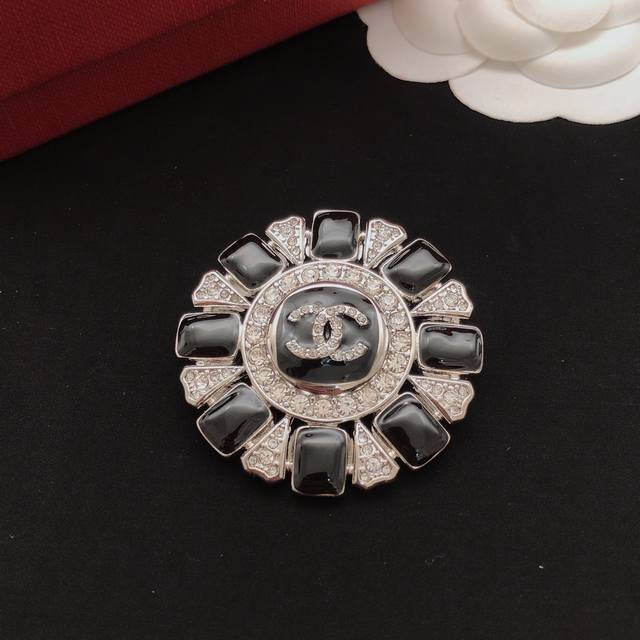 / 编号Xxz0079 航海系列黑色圆形水晶钻黑色珐琅满钻双C船舵胸针 船舵造型白珐琅晶钻双C做点缀 细节满满