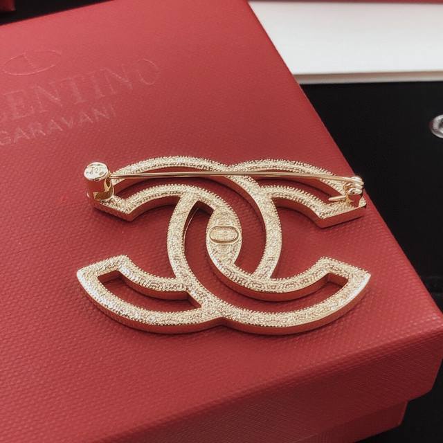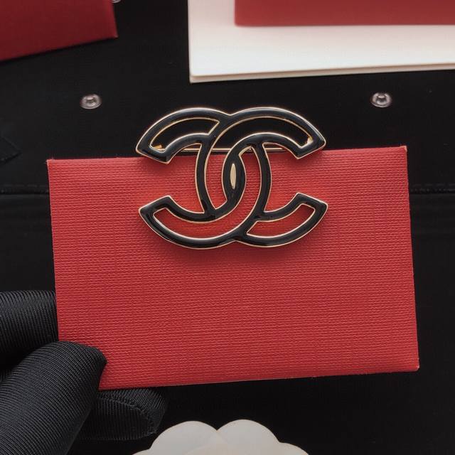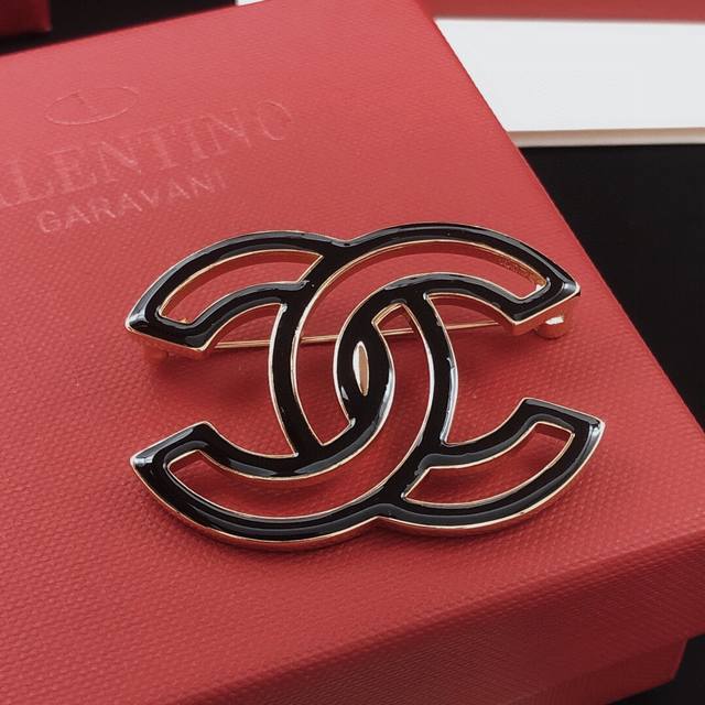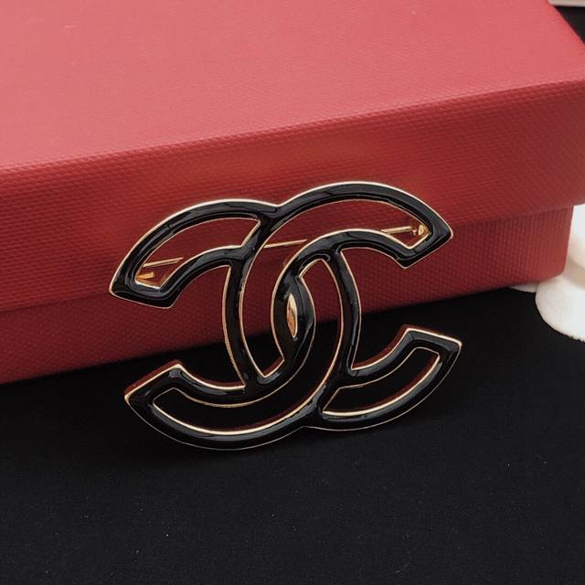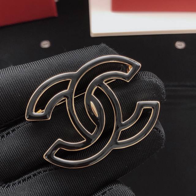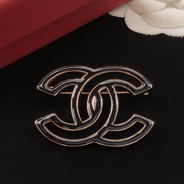 / 编号Xxz0220 Ch*Nel最新款双C镂空滴油黑色胸针 一致Zp黄铜材质