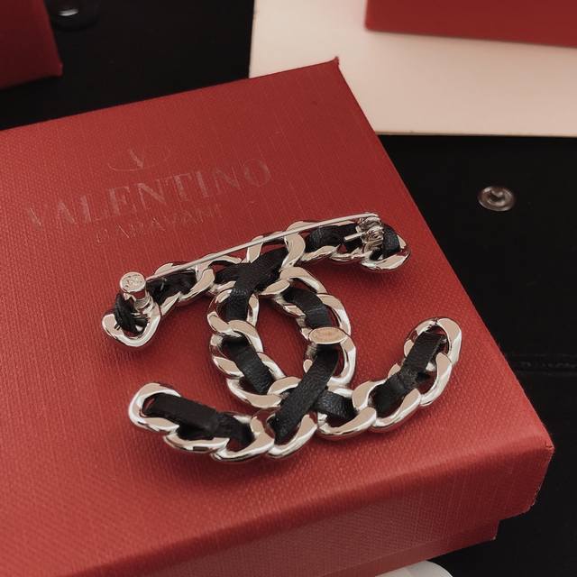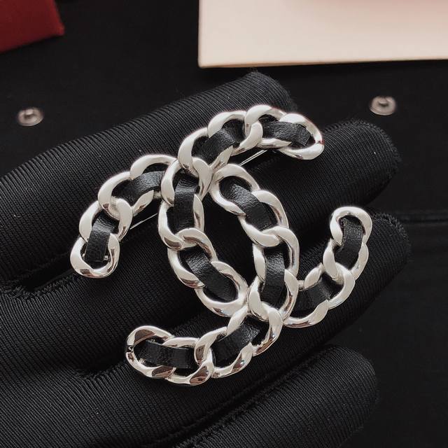 编号Xxz0236 Ch*Nel最新款银色皮革胸针 一致Z批黄铜材质